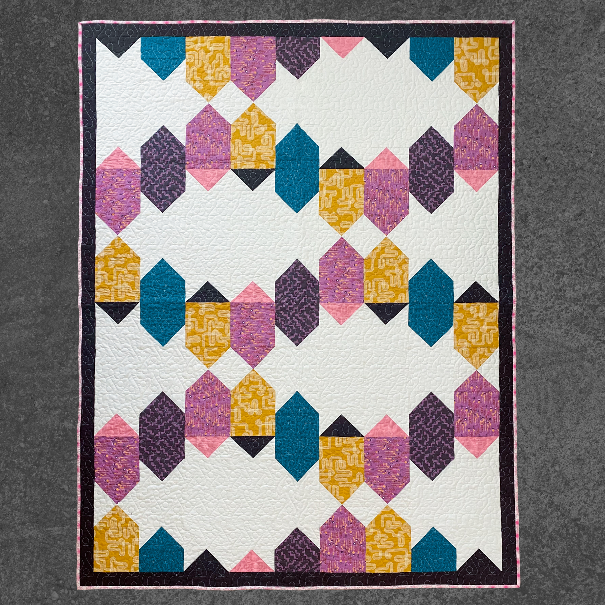 ❥ String Lanterns Quilt is a Confident Beginner pattern, perfect for quilters looking for a fun and modern design with striking movement.