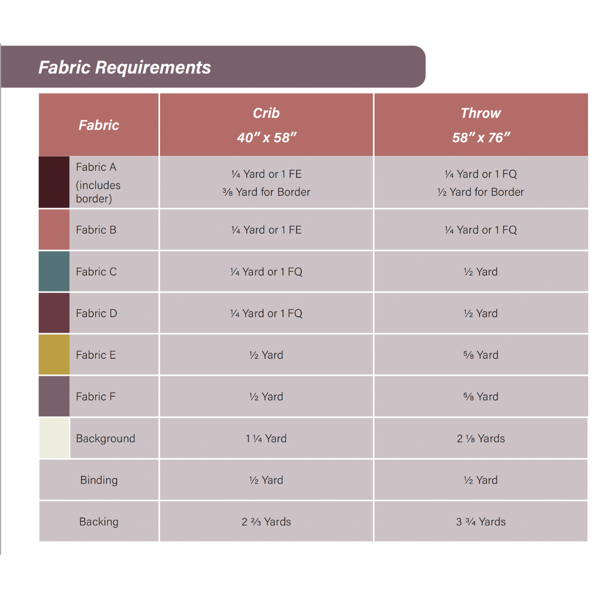 ✔️ Cutting chart & fabric requirements