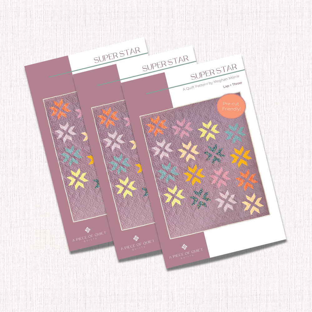 Super Star is a confident beginner-friendly quilt pattern that offers a fresh, modern take on a traditional star design. Bold yet balanced, the layout creates strong visual impact while remaining approachable and efficient to piece. The construction is streamlined, allowing quilters to enjoy a fast finish without sacrificing design interest.